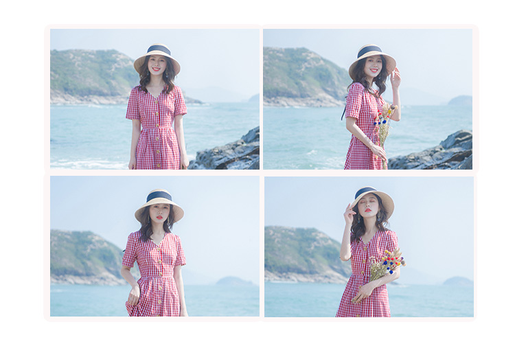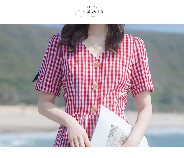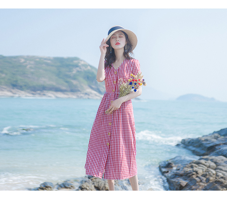 2019夏季新款女装沙滩裙复古格子很仙的法国小众连衣裙夏长裙裙子