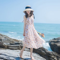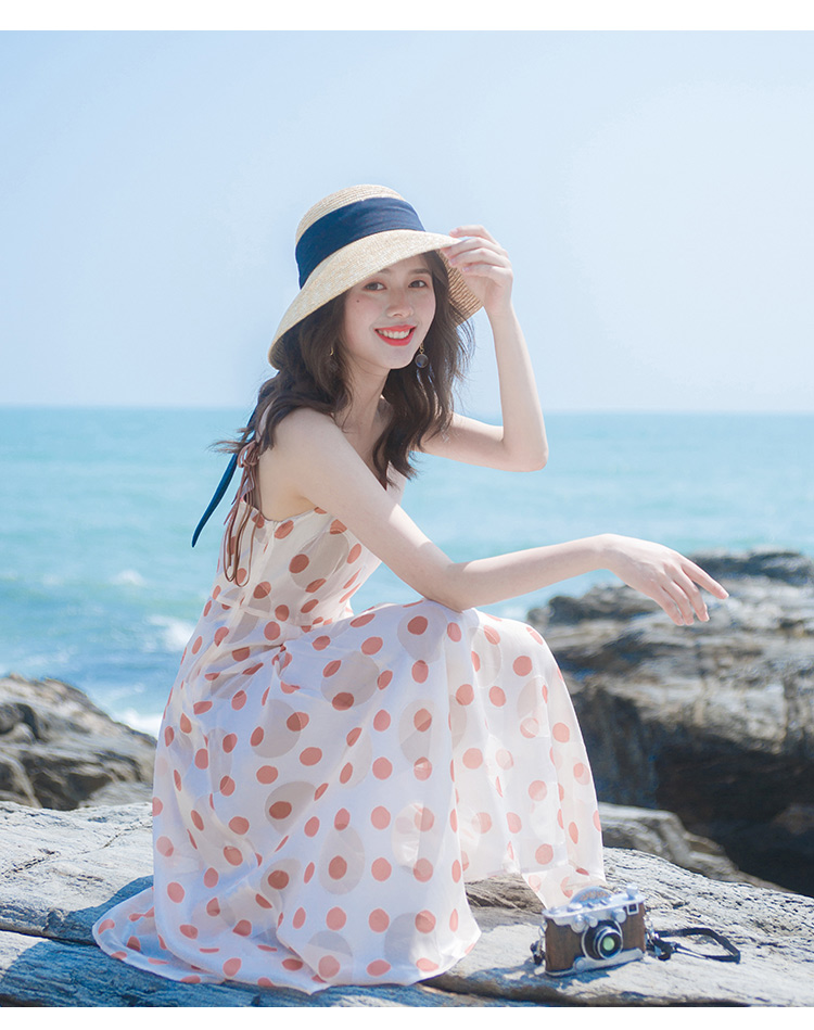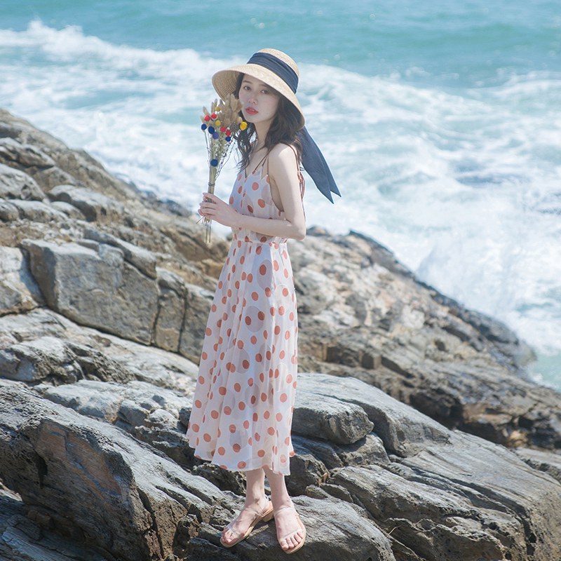 2019夏季新款沙滩裙海边度假小清新波点吊带很仙的法国小众连衣裙