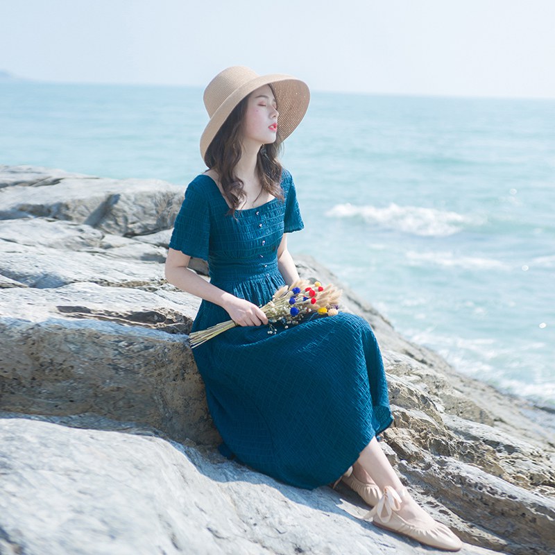 2019夏季新款女装流行裙子沙滩裙海边度假很仙的法国小众连衣裙夏