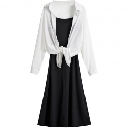 白色衬衫与黑色连衣裙搭配,经典时尚