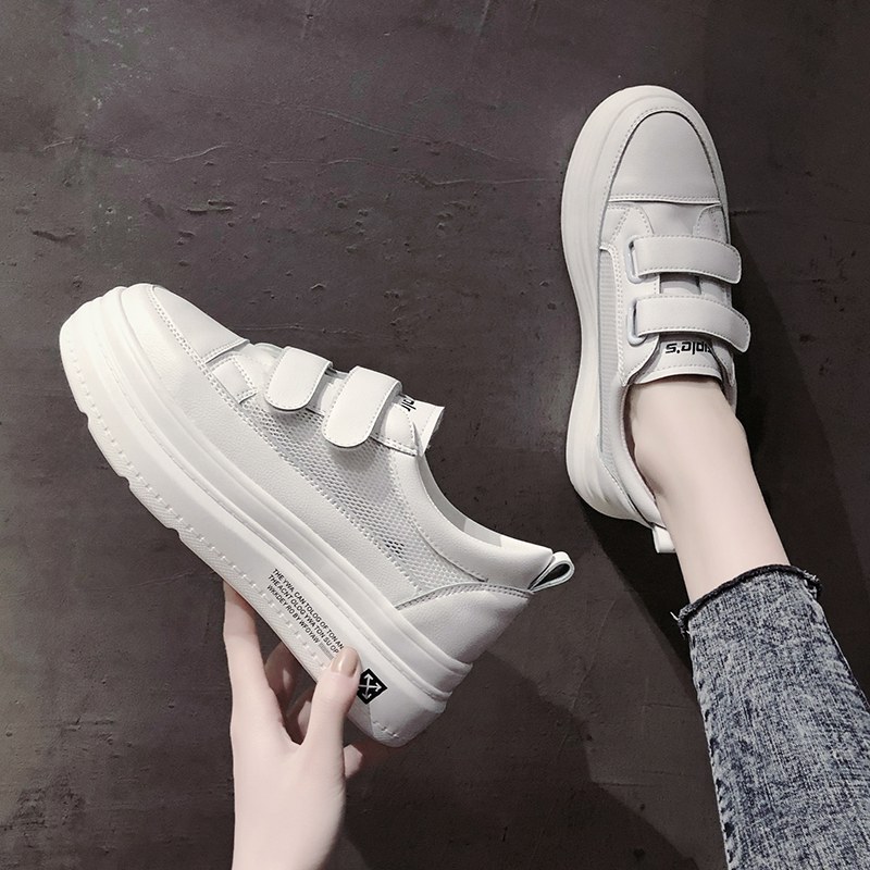 小白鞋子女透气网面2021秋款单鞋百搭松糕厚底增高白色休闲运动鞋
