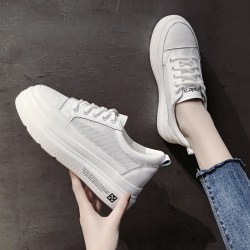 小白鞋子女透气网面2019春款单鞋百搭松糕厚底增高白色休闲运动鞋