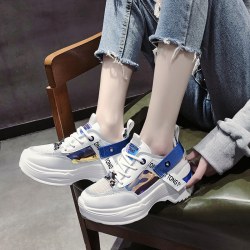 休闲运动鞋女坡跟单鞋2019春款网面透气百搭松糕厚底小白鞋ins潮