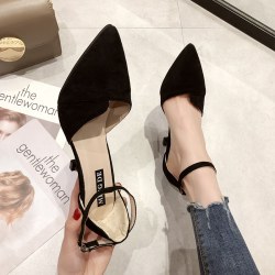 鞋子女2019春夏新款复古尖头单鞋chic网红水钻方扣细跟少女高跟鞋
