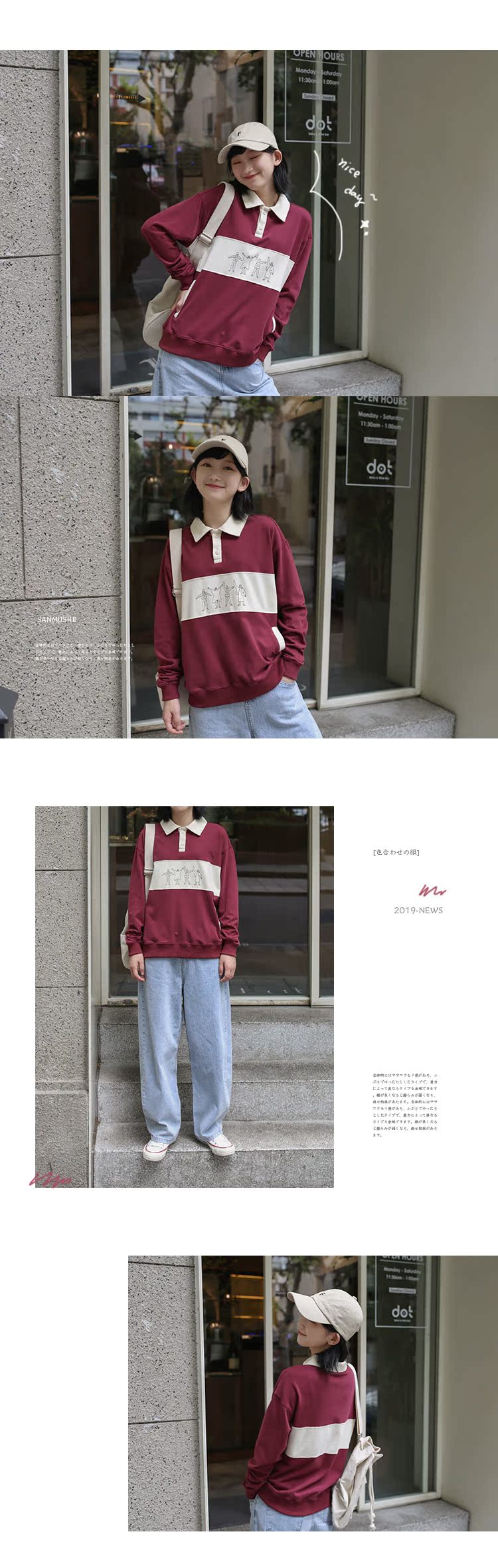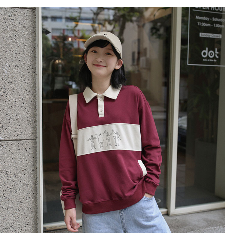 领口、口袋和图画部分做成拼色