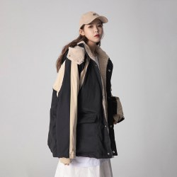 工装外套女宽松bf韩版潮ins学生慵懒风加绒加厚羊羔毛棉衣棉服
