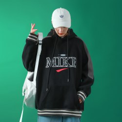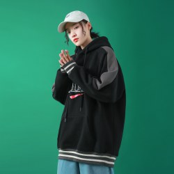 ins撞色印花连帽卫衣女2022新款韩版学生宽松bf情侣装上衣