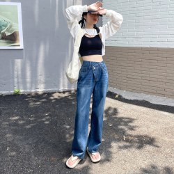 【预售】2021不规则高腰破洞阔腿裤女垂感牛仔裤