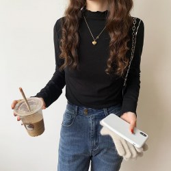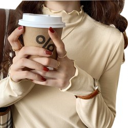 半高领打底衫女内搭修身春秋季2022年新款木耳边上衣长袖t恤