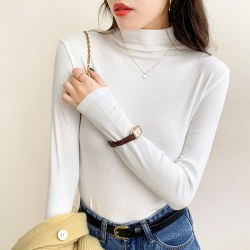 实拍半高领肌理感针织衫女2022春新款内搭上衣亲肤柔软基础打底衫
