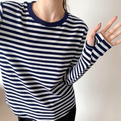 实拍秋季条纹长袖t恤女春秋纯棉上衣内搭打底衫2021新款早秋女装