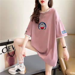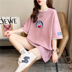日系夏装短袖T恤女ins潮卡通2022新款韩版宽松中长款假两件