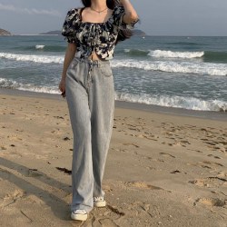夏季2022新款度假风修身显瘦短款气质水墨印花小心机短袖