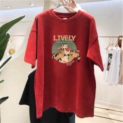 2022春夏新品宽松印花短袖T恤女装纯色棉