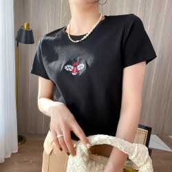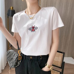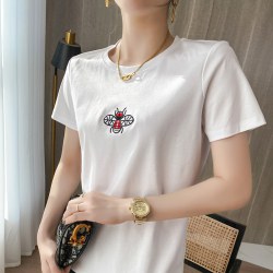 80支双面丝光棉白色圆领短袖T恤女刺绣蜜蜂夏季新款