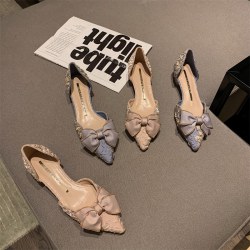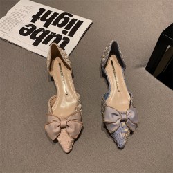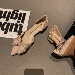 法式蝴蝶结甜美淑女低跟单鞋百搭仙女鞋碎花面软底中空鞋