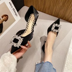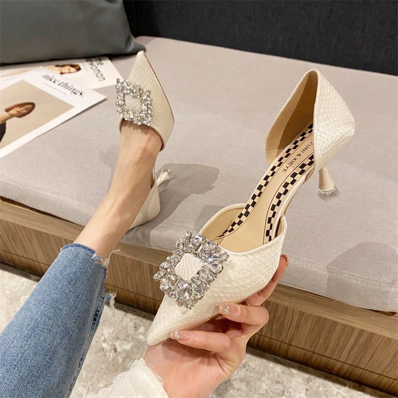 2022春夏新款高跟中空水钻扣温柔小 众女鞋