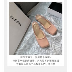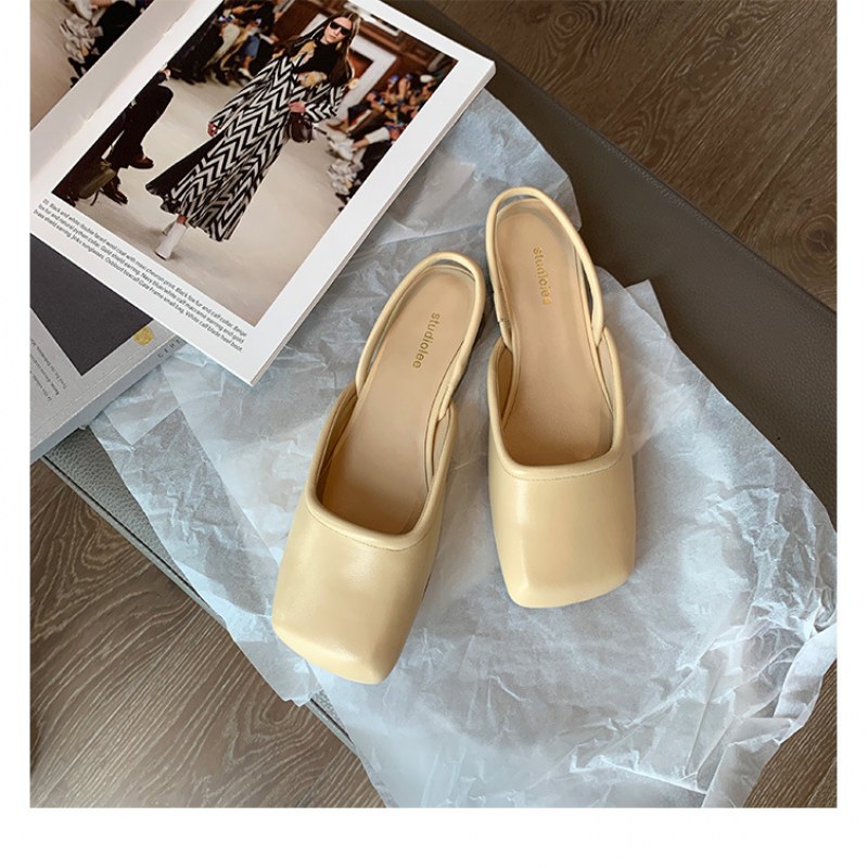 后空凉鞋女夏仙女风方头平底懒人半包头拖鞋外穿