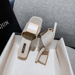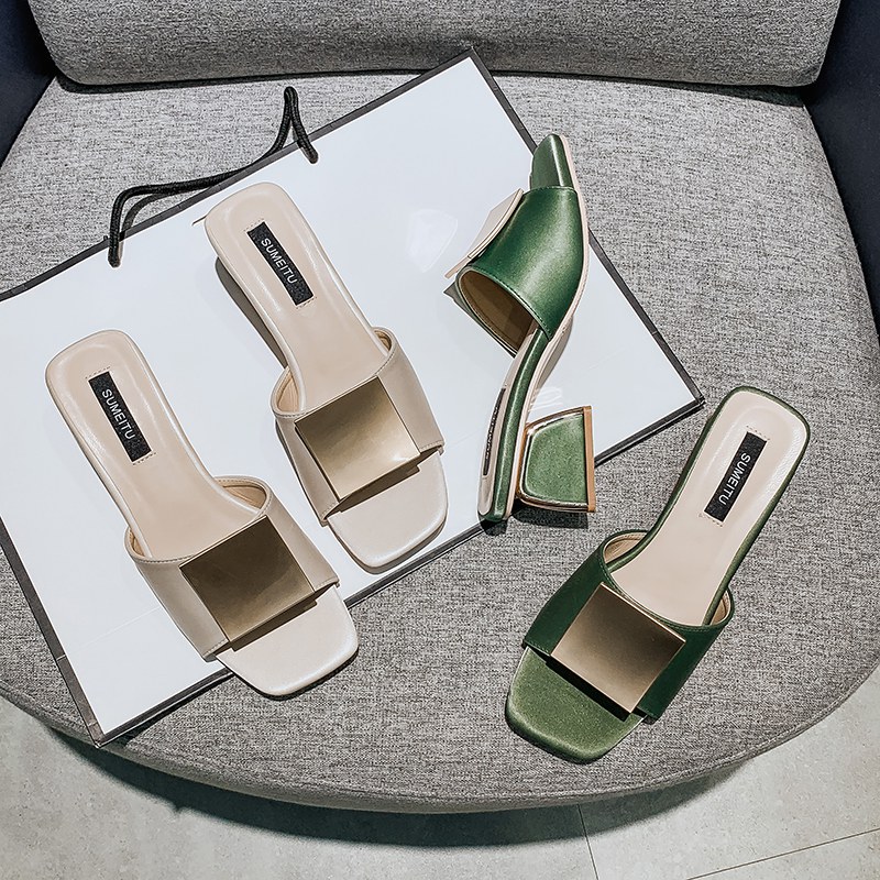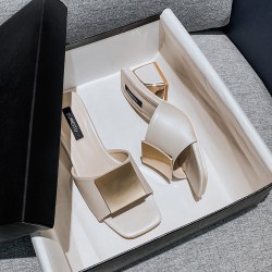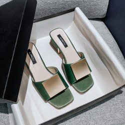 2022新款时尚粗跟方头网红凉拖鞋高跟懒人一字拖鞋潮