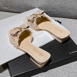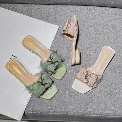 2022新款网红粗跟一字拖鞋仙女懒人中跟拖鞋女潮