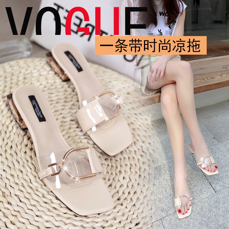 2022新款夏季时尚粗跟一字透明拖鞋懒人网红潮鞋
