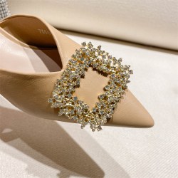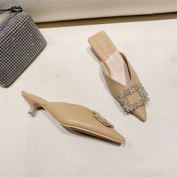 复古水钻方扣包头半拖鞋女外穿鞋子一脚蹬低跟穆勒凉拖