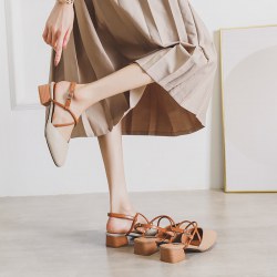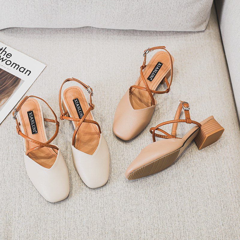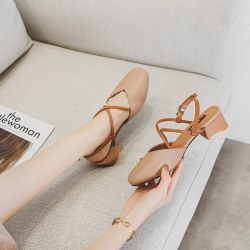 包头凉鞋中跟仙女鞋粗跟复古奶奶鞋2022年女夏