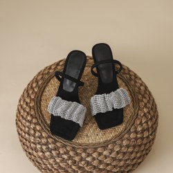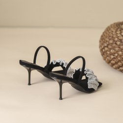 一字带水钻高跟凉鞋新款仙女风2022年新款