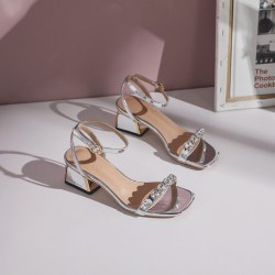 2022夏季新款凉鞋女仙女风金属中跟学生韩版百搭方头