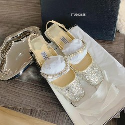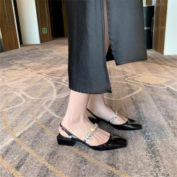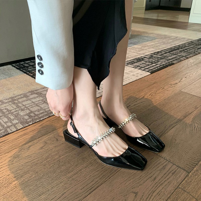 春夏一字钻带后空方头浅口粗跟包头玛丽珍凉鞋女