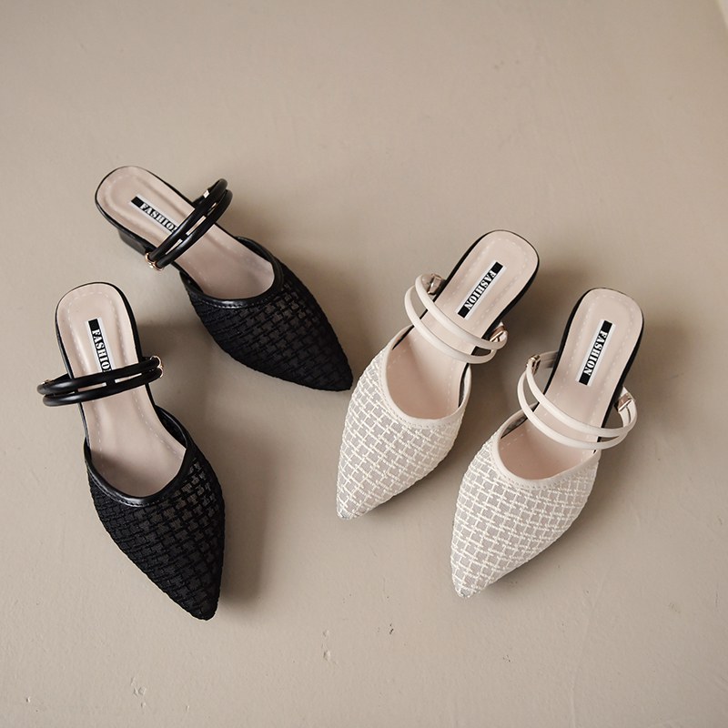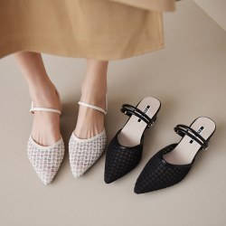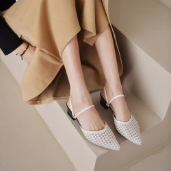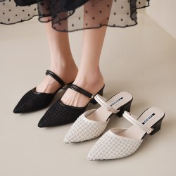 凉鞋拖鞋夏季2022新款春季尖头粗跟女单鞋包头