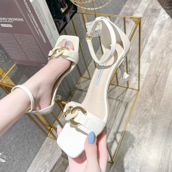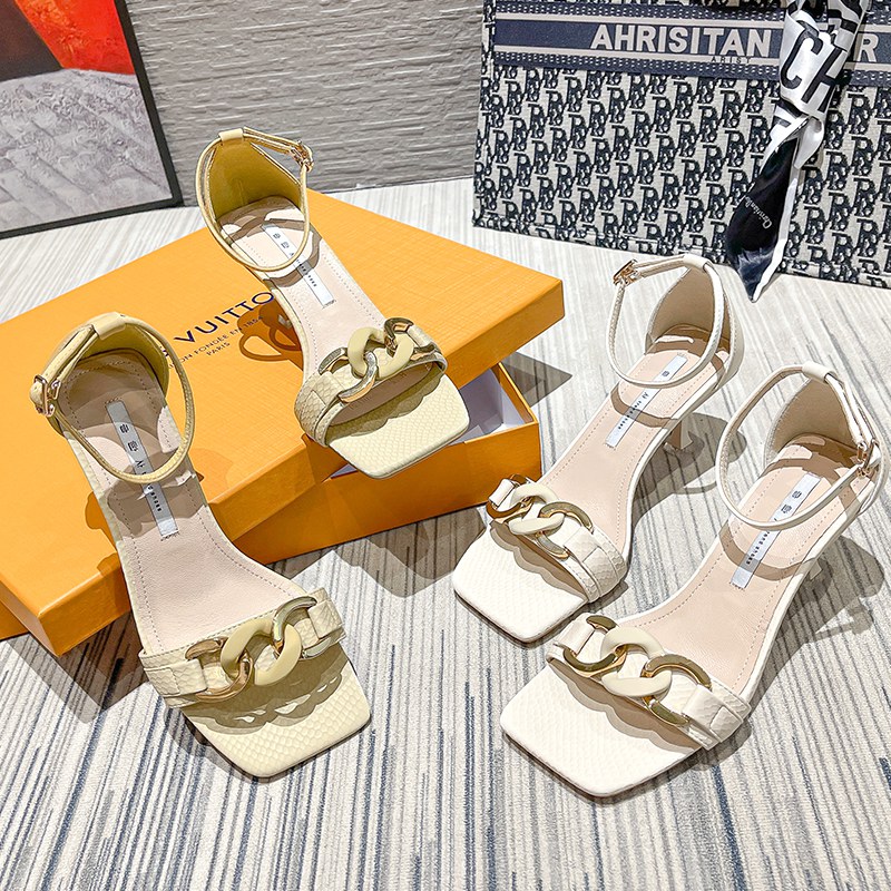高跟鞋女2022年新款方头搭扣夏款网红设计感法式细跟不累脚凉鞋