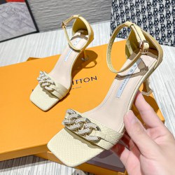 2022年夏季新款方头凉鞋女中跟细跟珍珠扣高跟鞋
