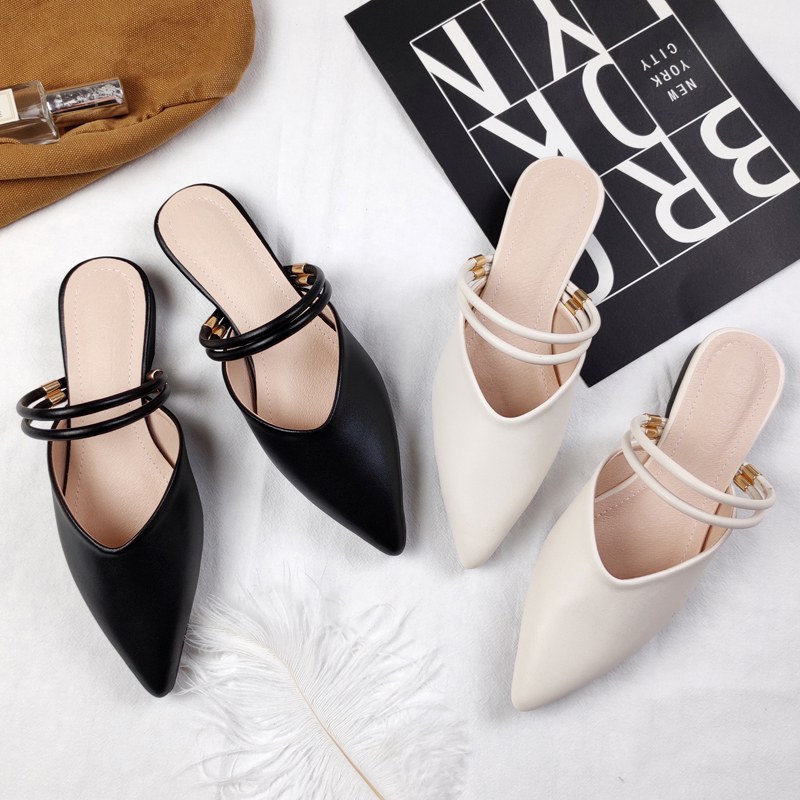 夏季包头半拖凉拖女士尖头平底两穿外穿懒人无后跟穆勒