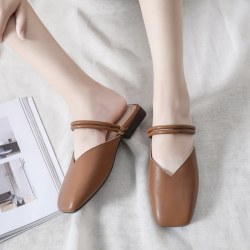 现货夏平底拖鞋女懒人半托包头穆勒鞋