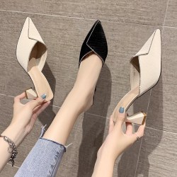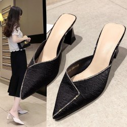 韩版时装半拖鞋女尖头高跟时装凉拖鞋夏季