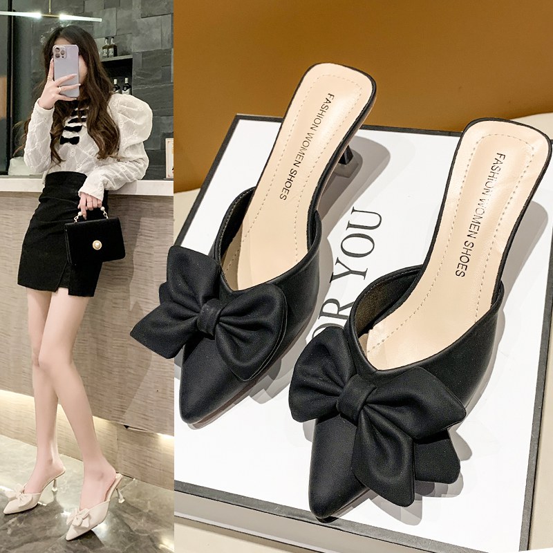 韩版时装半拖鞋女尖头细跟性感时尚凉拖鞋包头