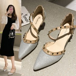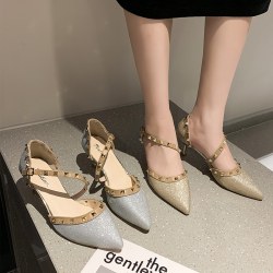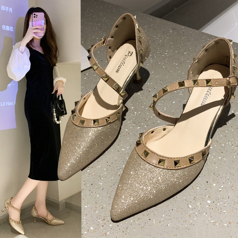 包头凉鞋女2022夏季罗马一字扣带高跟仙女风尖头细跟