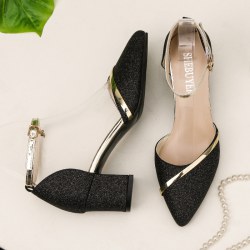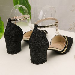 2022年新款包头高跟凉鞋女鞋中跟粗跟时装旗袍单鞋