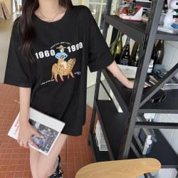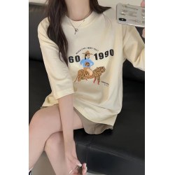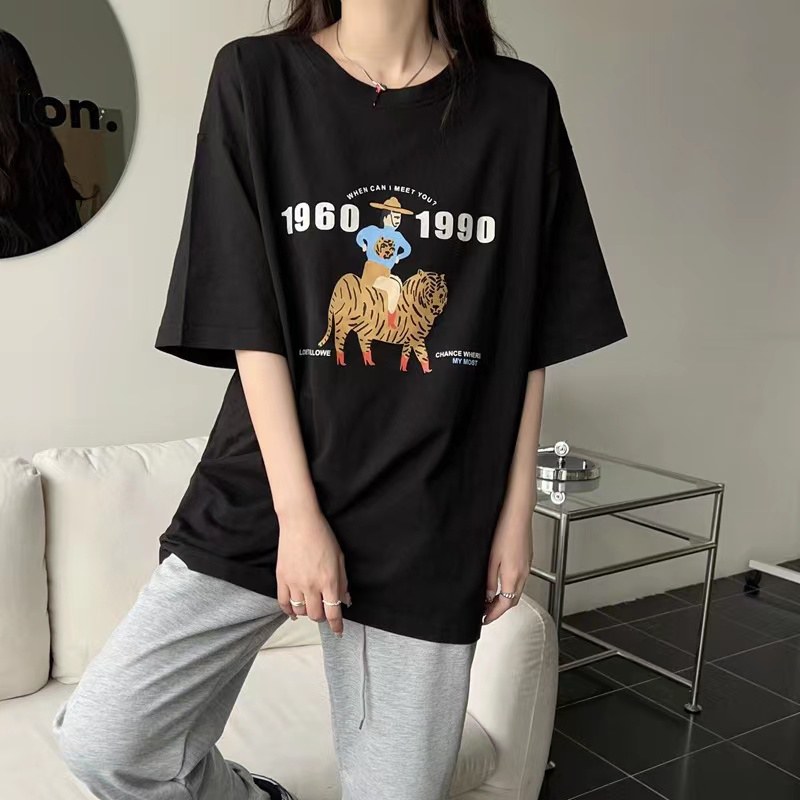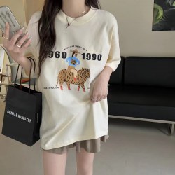 2022春夏韩版ins风宽松圆领百搭印花短袖上衣