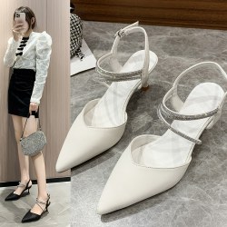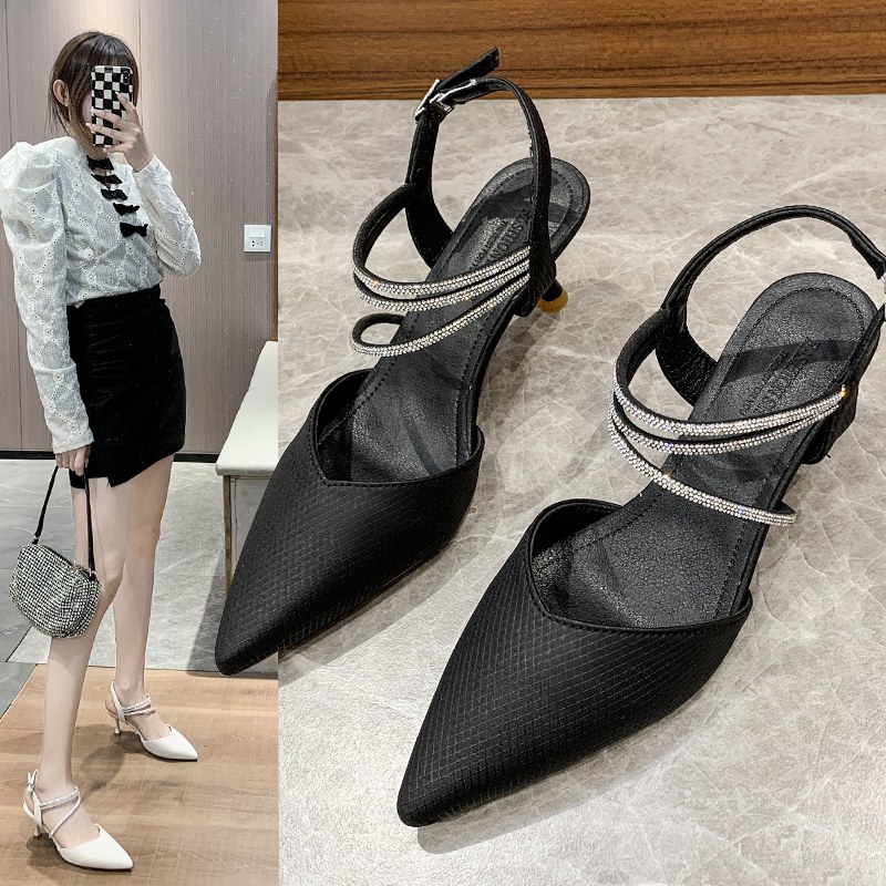 高跟凉鞋女2022年新款气质包头细带水钻一字扣浅口尖头