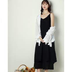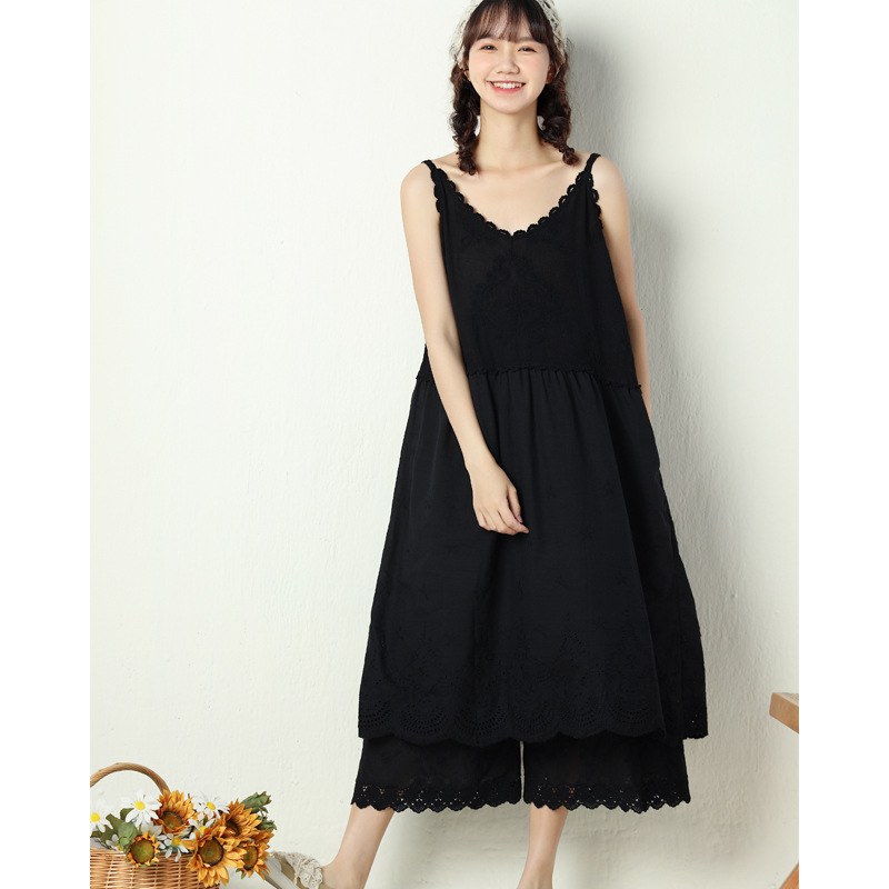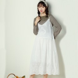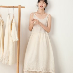 刺绣胸花白色连衣裙夏季甜美日系女装镂空拼接吊带裙