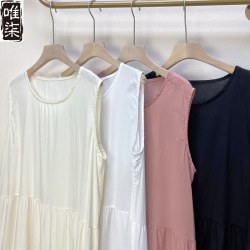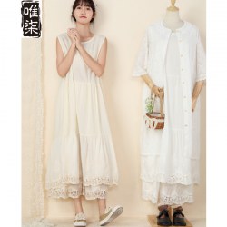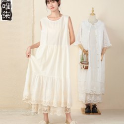 日系森系女装纯色背心连衣裙白色甜美宽松水溶花边刺绣