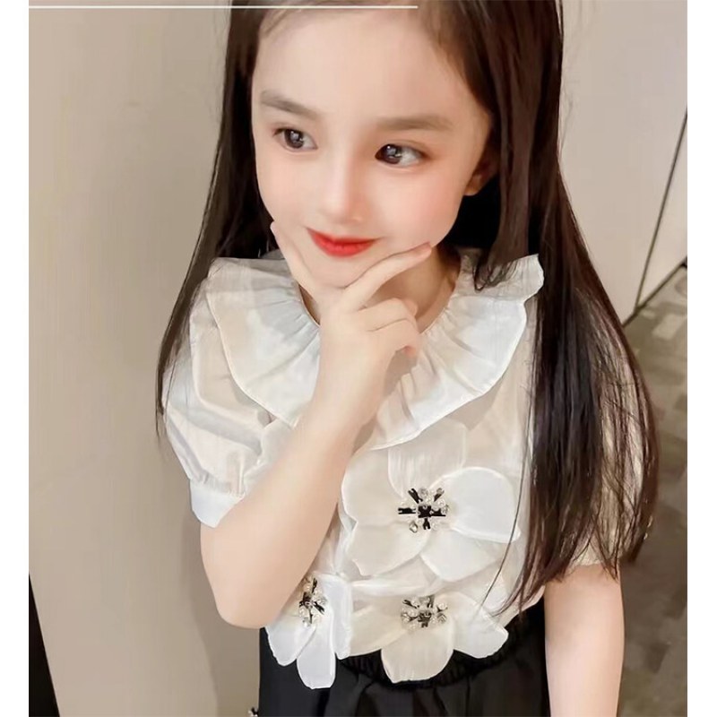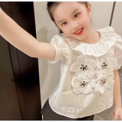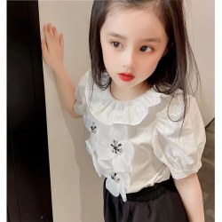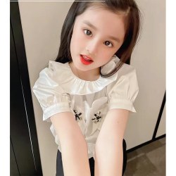 韩国女童夏装中大童洋气花朵儿童短袖可爱