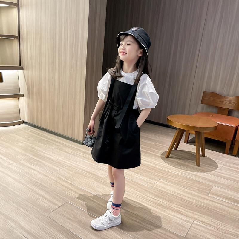 2022新款儿童洋气夏季网红中大童薄款韩版背带裙套装
