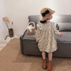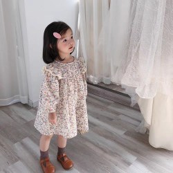 女童碎花裙春装2022新款儿童韩版洋气荷叶边棉连衣裙