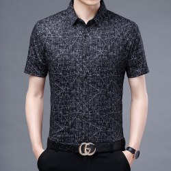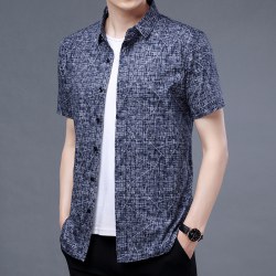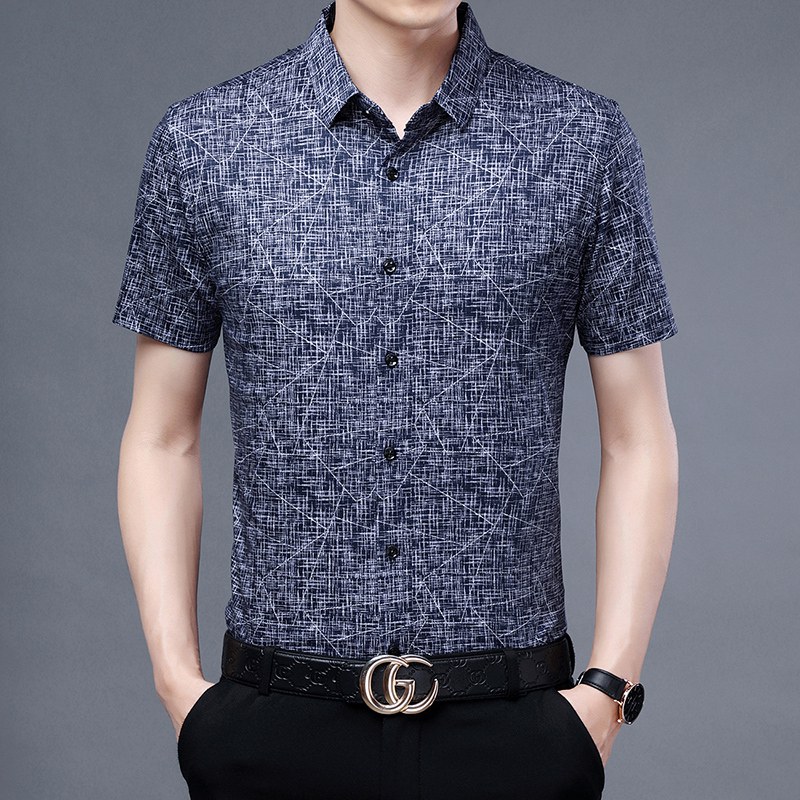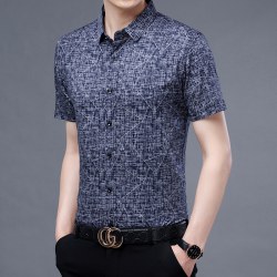 2022年新款男士碎花休闲修身型薄款翻领短袖中年夏季衬衣