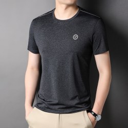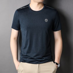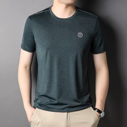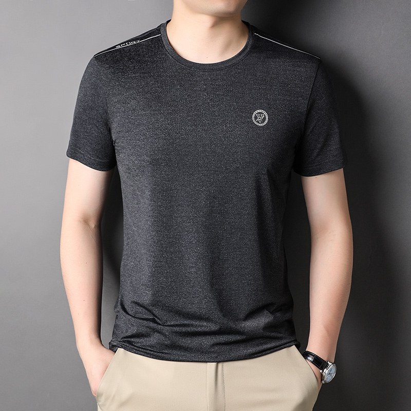 2022夏季中年男士丝 光棉纯色T恤男时尚圆领商务休闲短袖