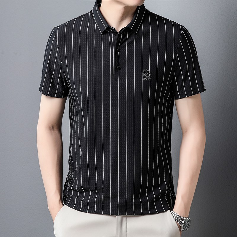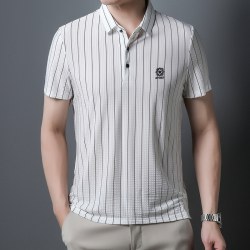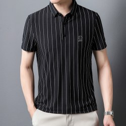 2022夏季新款男士短袖Polo衫韩版休闲时尚条纹烫钻