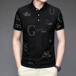 男士宽松短袖印花棉T恤时尚休闲夏装2022新款翻领POLO衫